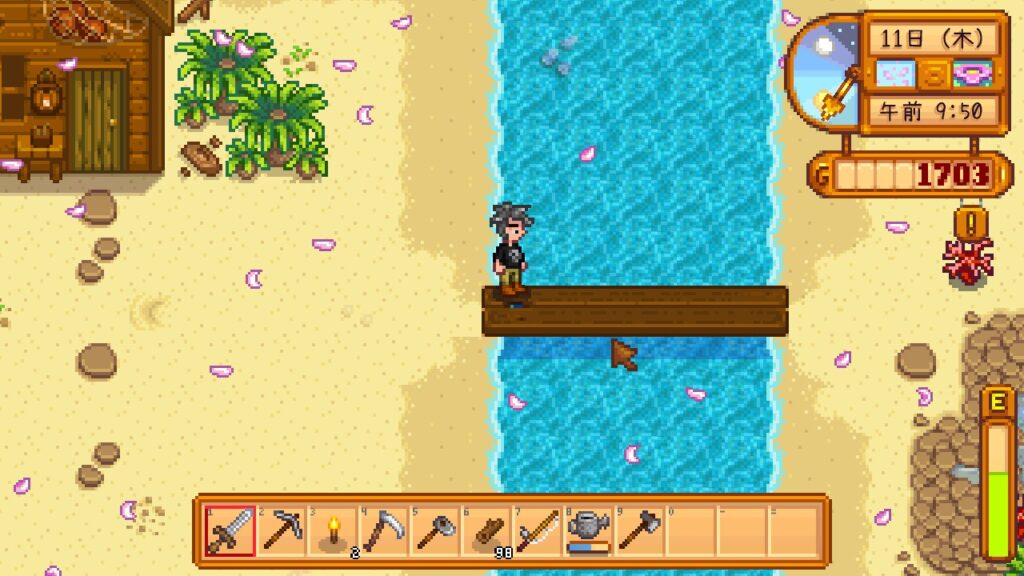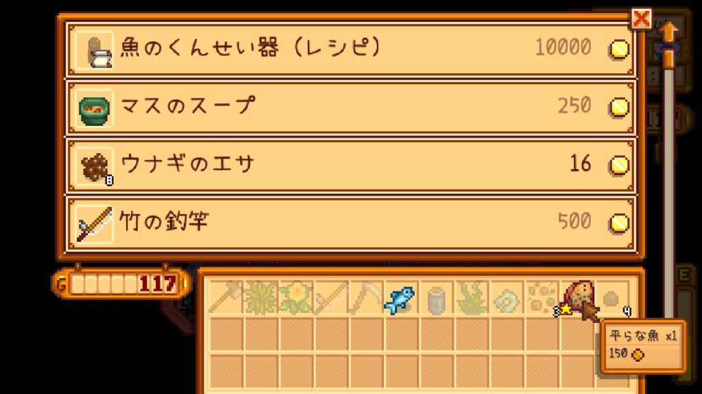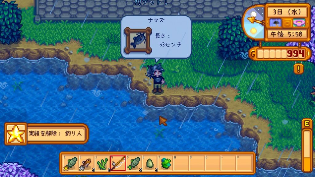 農業ゲーとは言ったけど、序盤は元手もあまりないため釣りで魚を釣って売るよ!