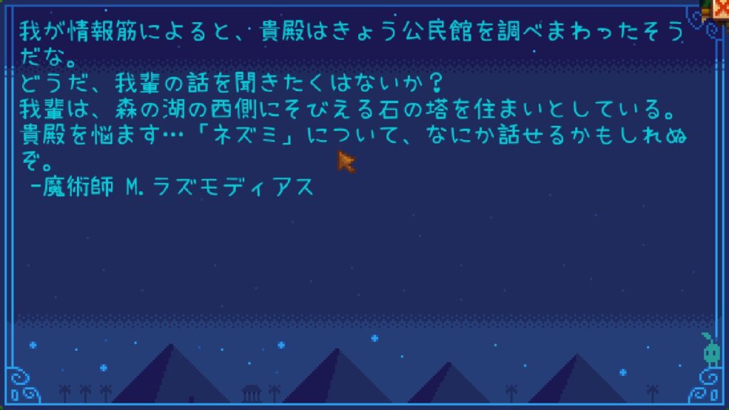 くれたのはこのペリカンタウンの町長、ルイスさんだ