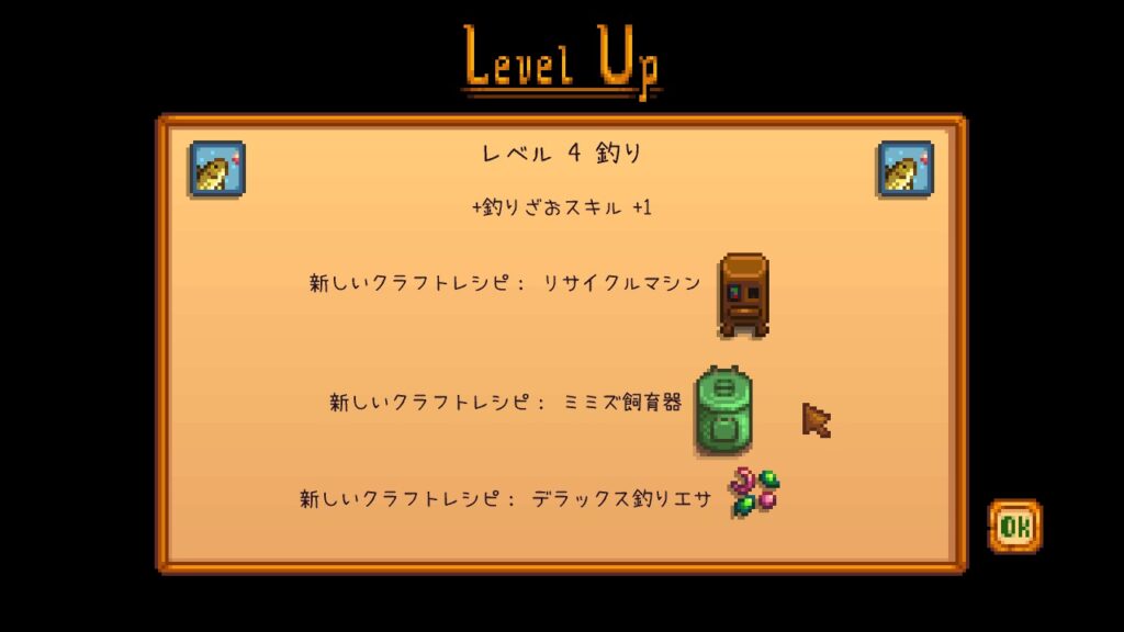簡単に言うと釣りをたくさんやれば釣りのスキルレベルが上がるという感じ!
