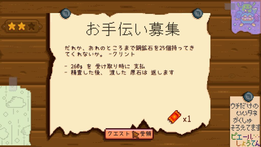 これは銅鉱石を掘って持っていけば終わるのでやっていきたいね!